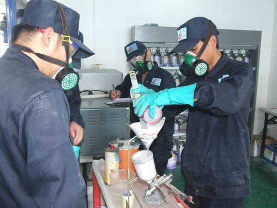 老師們進行調(diào)配底漆
