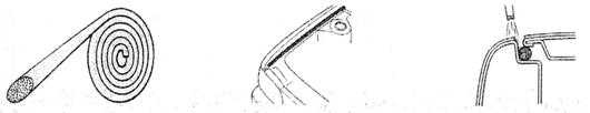 同前面的繩子作用一樣,是一種輔助遮蔽材料,主要用在有密封條的部位的遮蔽。有經(jīng)驗(yàn)的師傅知道,在遮蔽密封條或嵌條部位時(shí):遮蔽過(guò)多,部分邊緣會(huì)無(wú)法噴到涂料;遮蔽過(guò)少,則會(huì)連密封條或嵌條上也噴上了涂料。在這種情況下,可以在密封條下面嵌入一種特別的產(chǎn)品,將密封條或嵌條與車身之間撐起一道縫隙,這樣在涂裝時(shí),涂料就能涂勻縫隙邊緣,拆下遮蔽材料后,縫隙邊緣的涂膜就會(huì)均勻飽滿。下圖所示即為此類產(chǎn)品的一例: